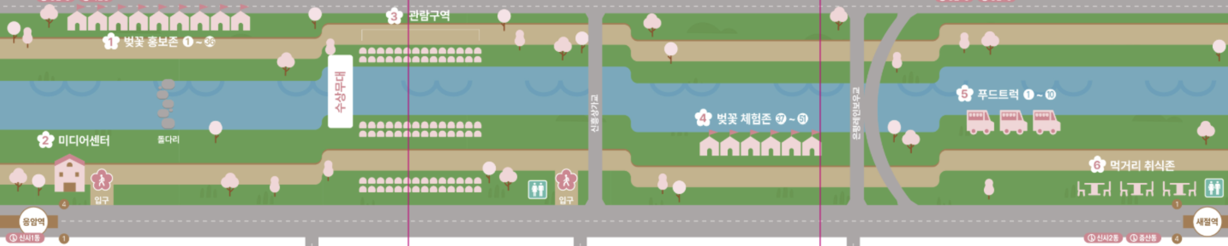 - 포토존: 인생샷을 남길 수 있는 벚꽃 포토존이 곳곳에 설치됨